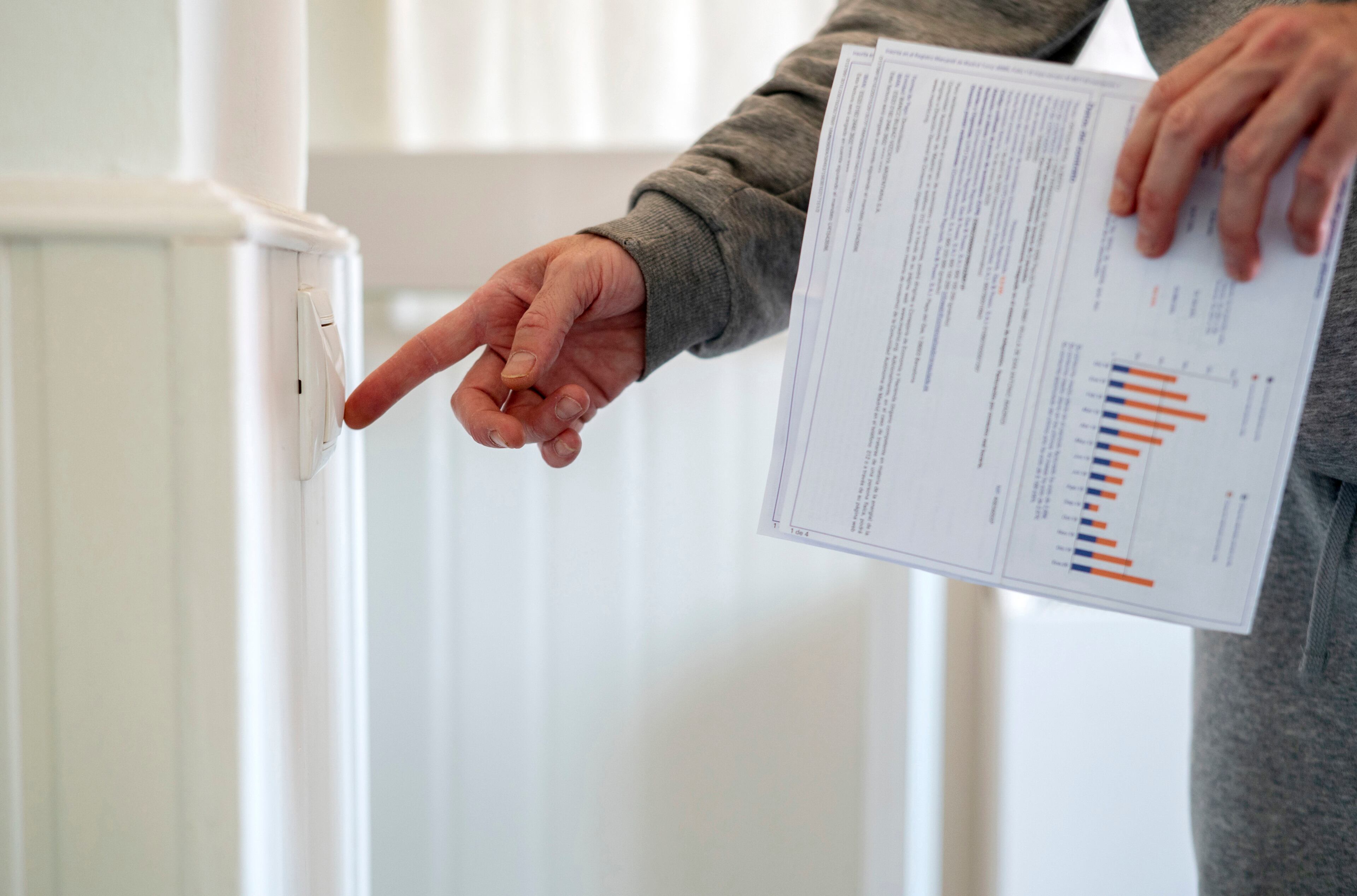 Archivo - Un hombre enciende un interruptor con una factura de luz en la mano, a 3 de enero de 2022, en Madrid, (España). El precio medio de la electricidad en el mercado mayorista vuelve a subir hoy, en concreto un 9,88% con respecto al precio del día Alberto Ortega - Europa Press - Archivo